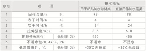 物理力學性能指標符合TBT2965《鐵路混凝土橋面防水層技術條件》的要求(見下表)